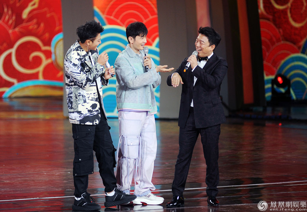 2020年1月23日,山东济南,2020山东春节联欢晚会。黄渤、黄晓明、黄子韬合体现身,现场飙青岛话,并即兴表演小品“买衣