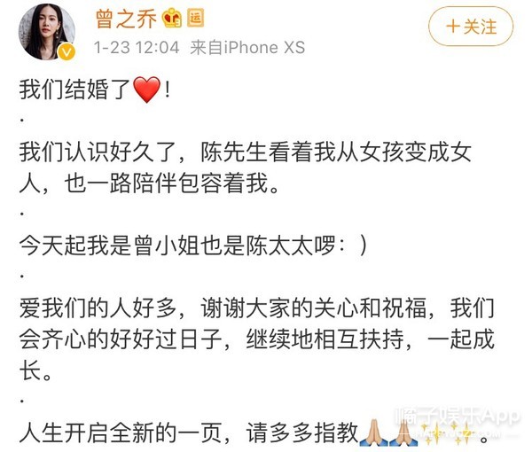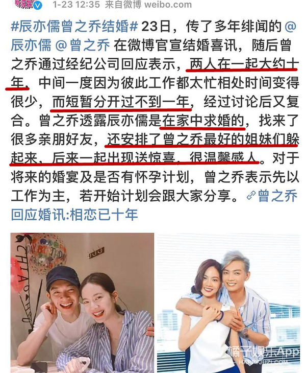 曾之乔后来通过经纪公司回应,他们在一起都快十年了。