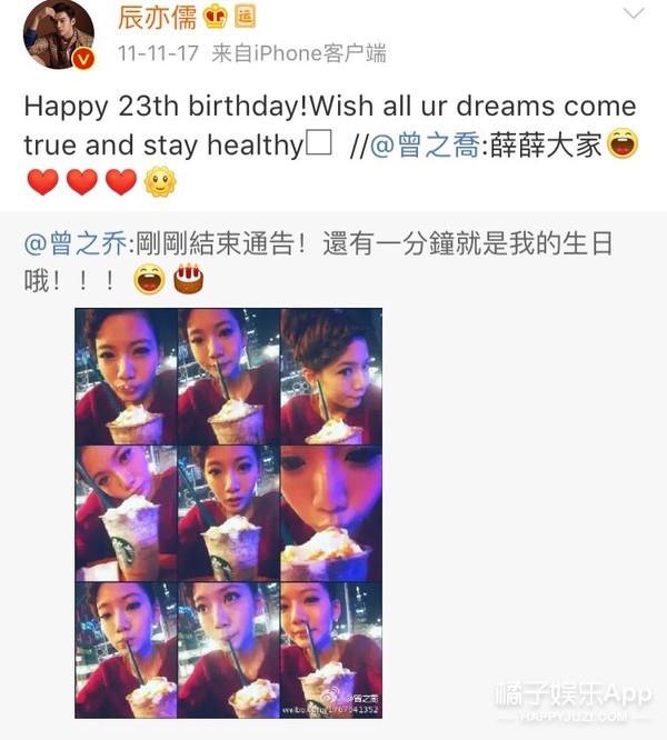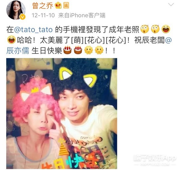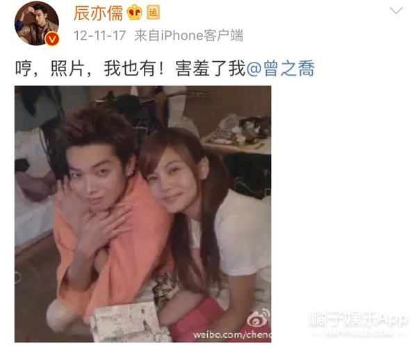 到曾之乔生日的时候,辰亦儒也回了一张合照。