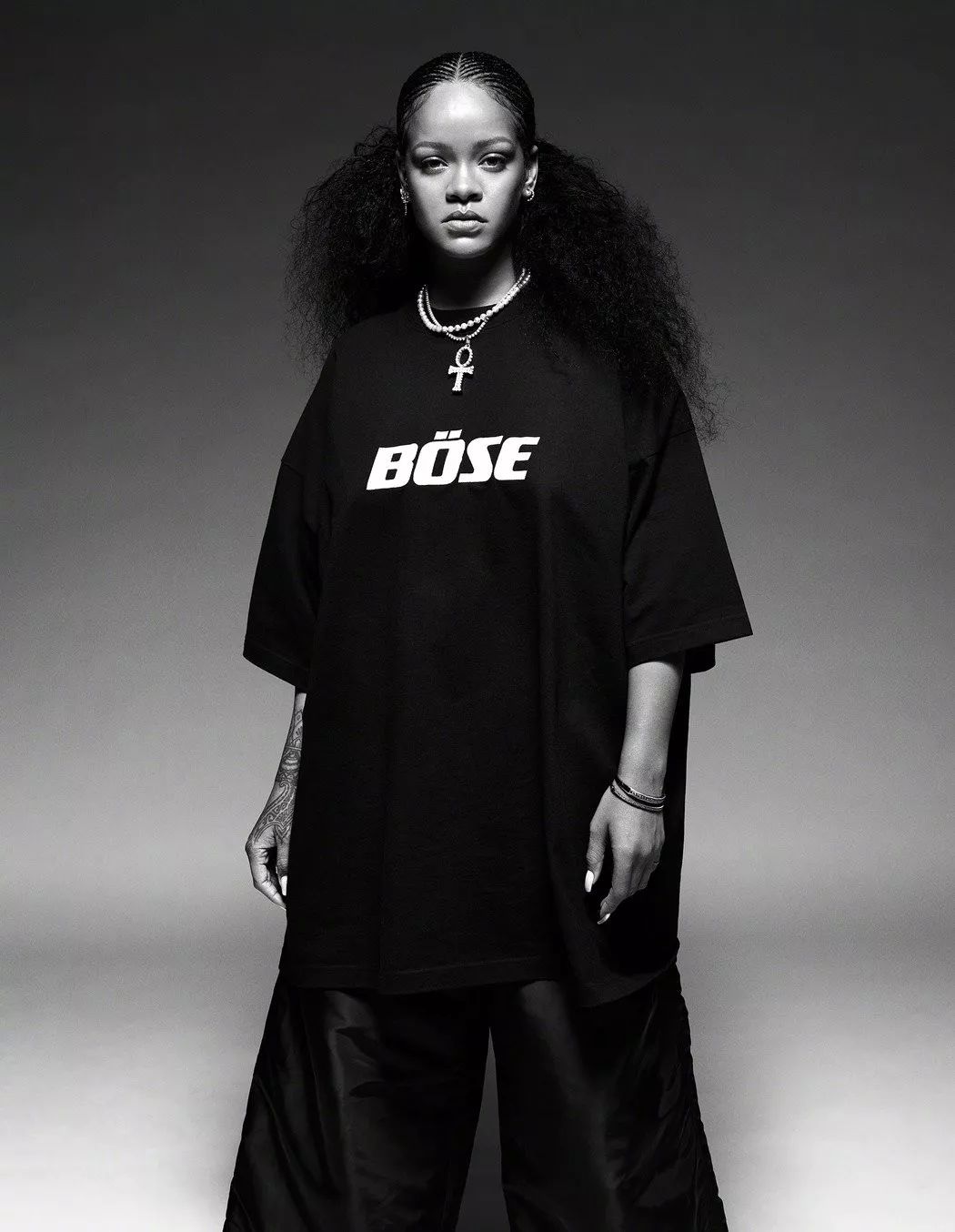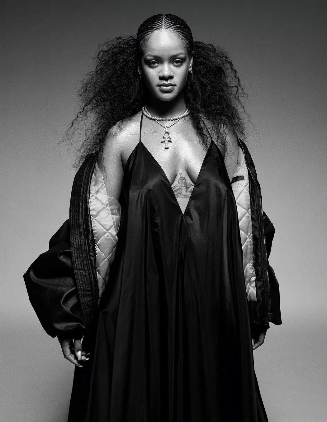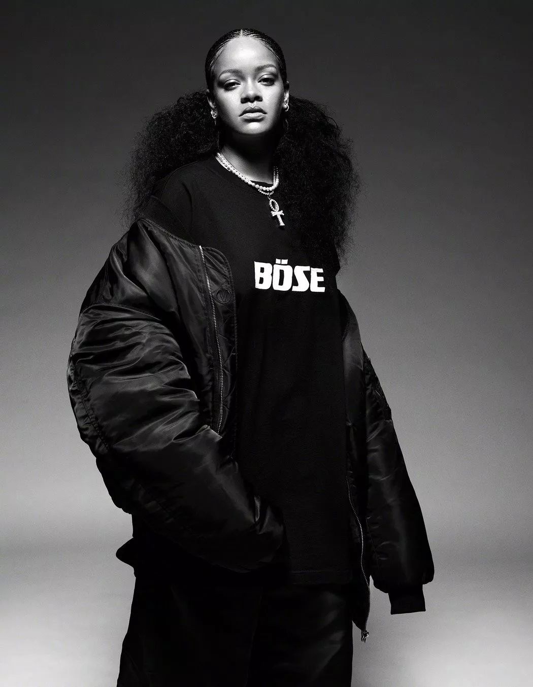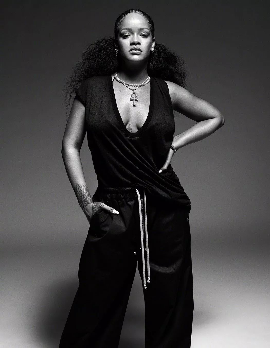 这组写真里蕾哈娜的服装全都来自她创立的品牌Fenty。从化妆品到内衣再到服装,蕾哈娜的副业干得比主业还要风风火火。
