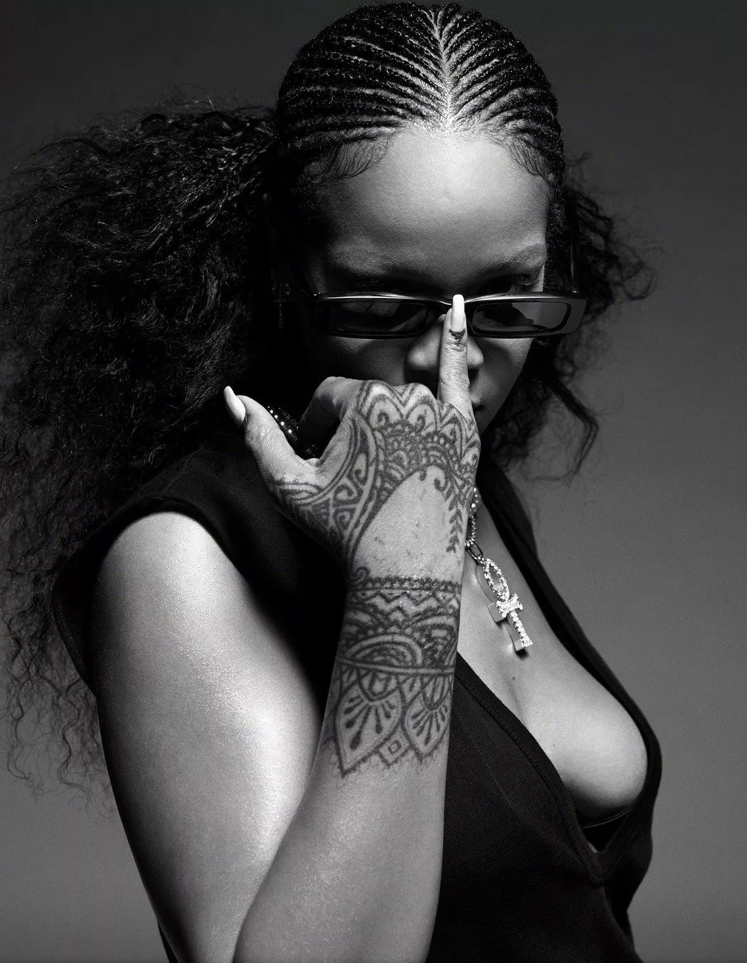 有一段时间没有分享过蕾哈娜的杂志硬照了。最近她登上了i-D杂志2020开年刊的封面,黑白照又酷又