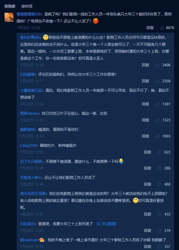 工作人员的“怨气”可以理解,电影提档也就意味着原本安排放假的他们要返回公司上班,原本他们跟家人过除夕吃团年饭的愿望瞬间化为泡影。
