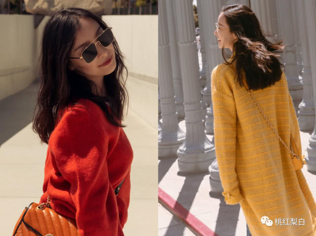尤其是她的无数个旅拍look,比如最近新出的一组加州旅行照片,从造型到pose,都很值得学习。 一红一黄两件大大的毛衣,也是我们在过年这段时间马上就可以pick起来的单品。