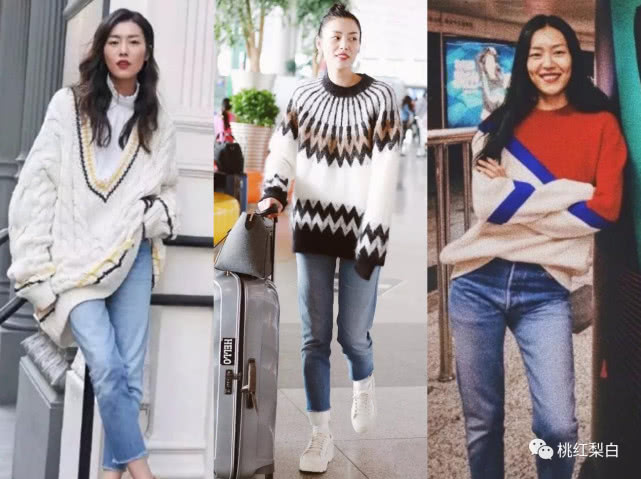 特别是刘雯,去年几乎一整个冬天,都在穿大毛衣+牛仔裤的look。 经常上我们的穿搭红榜。