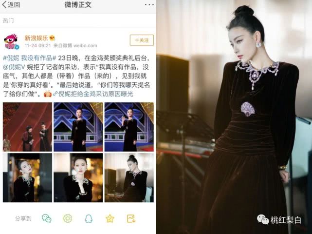 金鸡百花电影节上,倪妮还拒绝了记者的采访,原因就是自己没作品没底气,问来问去也只有“穿得好看”。