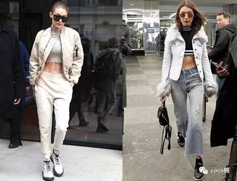 和近期只是露出腰部一小节的风格不同,这种短板上衣露出的皮肤更多。(胸部以下,腰部以上的程度)