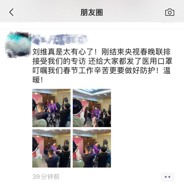 1月22日,有记者透露,刘维在参加2020年央视春晚第五次联排过后,接受采访时为每一位工作人员都准备了医用口罩作为小礼物。还称,刘维“叮嘱我们春节工作辛苦更要做好防护!温暖!”这么暖心带头防护的行为得到网友点赞。据悉,刘维将在2020年央视春节联欢晚会与谢娜、肖战等合作节