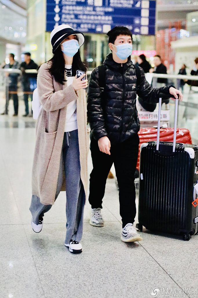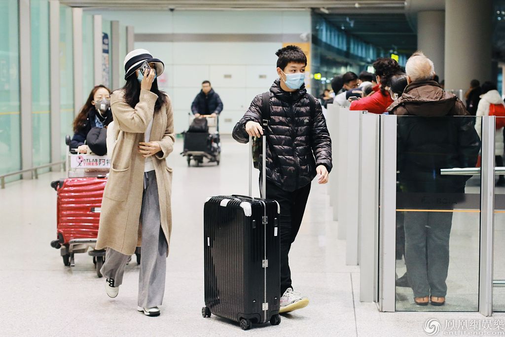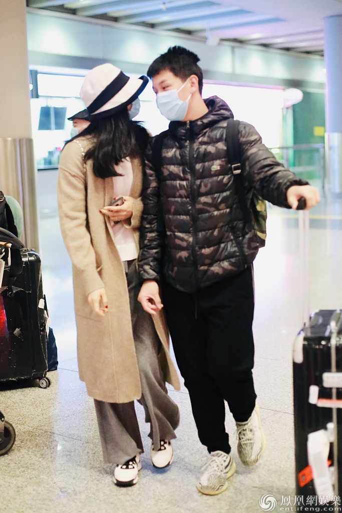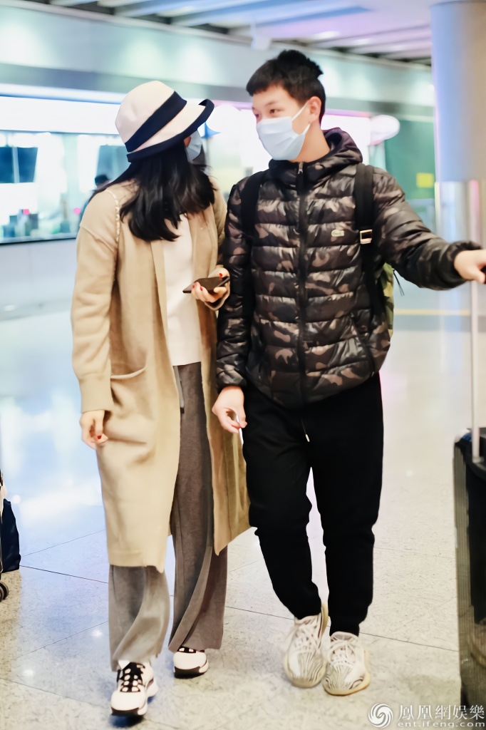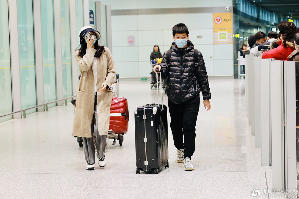 2020年1月23日,北京,明星家庭现身机场。