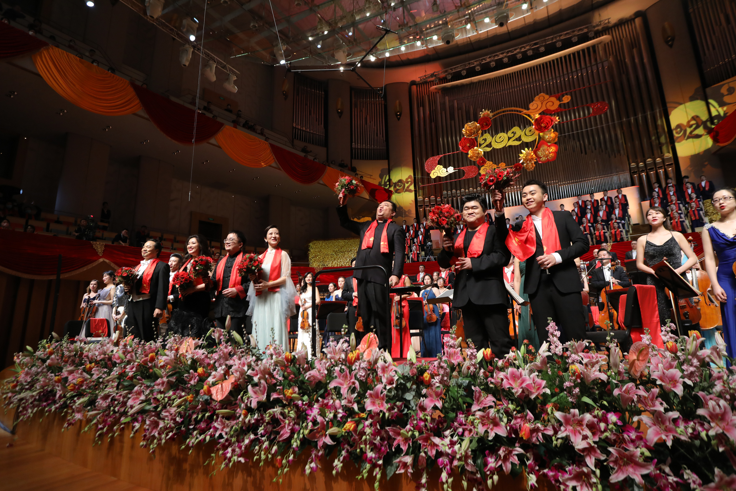 凤凰网娱乐讯 1月22日晚,“龙凤呈祥——全球华人新春音乐盛典2020”在国家大剧院音乐厅拉开帷幕,指挥吕嘉携国家大剧院管弦乐团、钢琴演奏家陈默也、古筝演奏家常静、小提琴家何子毓、中提琴家梅第扬、女高音歌唱家于冠群、男低音歌唱家李晓良登台演
