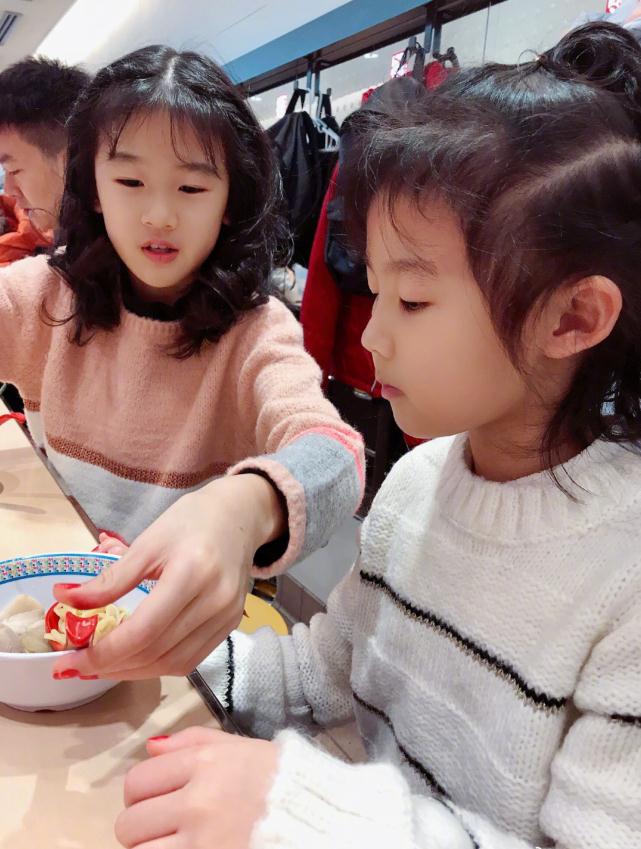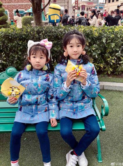 陆毅家的两个女儿虽然不是双胞胎但是站在一起,也是让人傻傻分分不清楚。同款瓜子脸,同款空气刘海,穿着一样的姐妹服,简直是为难脸盲患者啊。