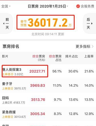 剩下的电影诸如徐峥的《囧妈》,巩俐的《夺冠》,成龙的《紧急救援》……它们的票房成绩加起来也不及《唐人街探案3》。