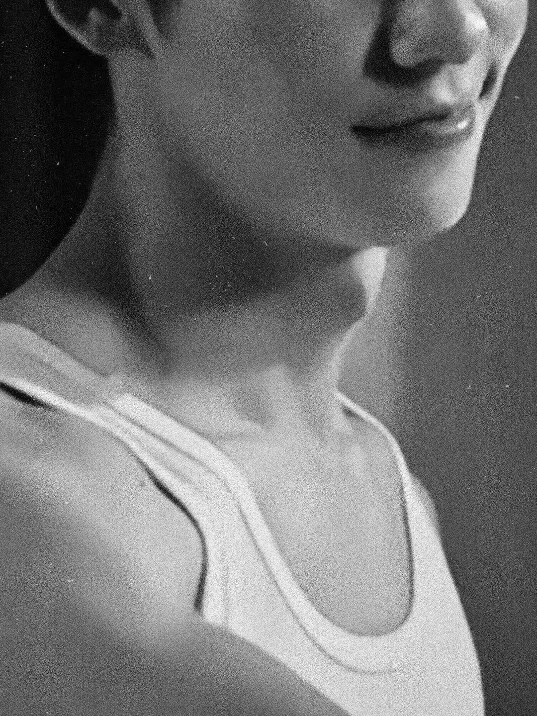 发丝乖巧地趴在额头上,单眼皮男生的眼神也可以很有戏。面庞上没有一丝肌肉的赘余,走向清晰平整,五官弧度工整耐看,禁得起特写的严苛考验。