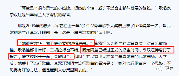 虽然当时已经错过了正式的招生时间,但她还是进了军艺, 第二年参加了补考。