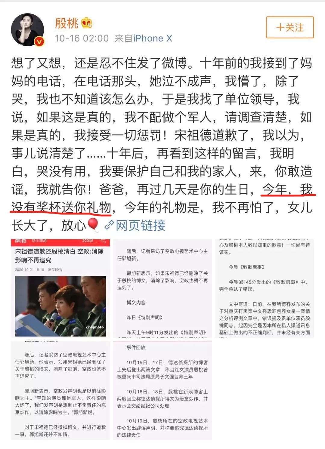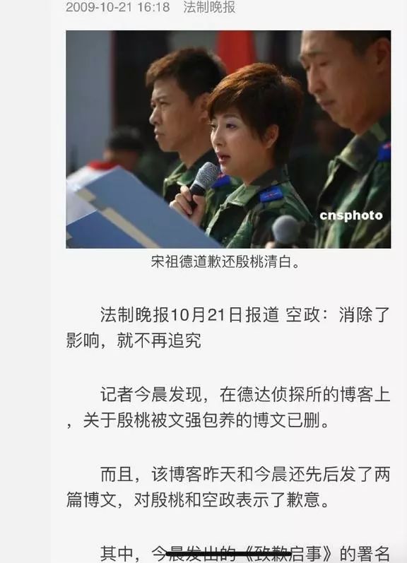 之后也通过法律程序起诉了造谣者,当时宋祖德还对殷桃本人以及空政进行了道歉。