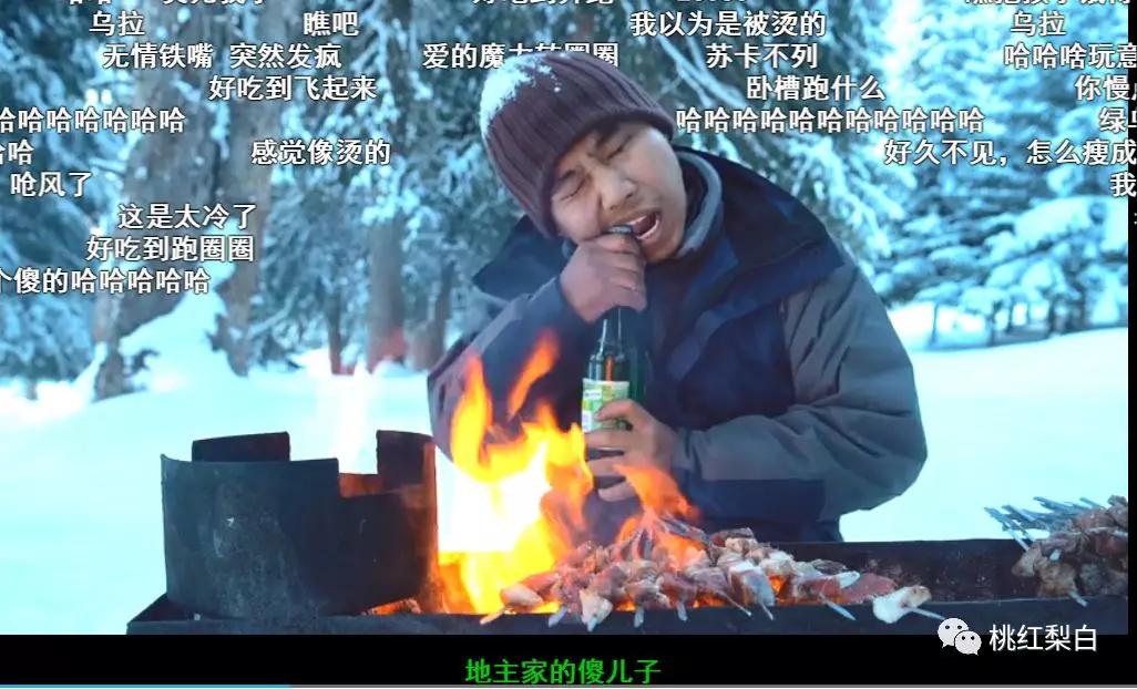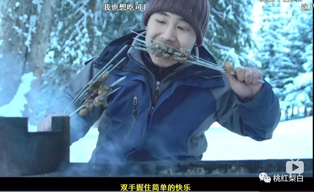 好多人的入坑视频是他的那一期《一个人吃肉》。冰天雪地一个人住在小木屋,没有手机没有电视,只有一盆炭火。没关系,自己串起羊肉串,自己烤自己吃,弹幕飘过一句:双手握住简单的快乐。