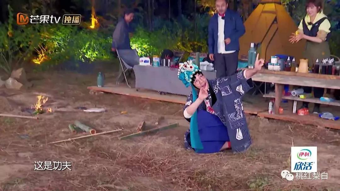 林依轮在竹林间有感而发,直接吊起嗓子唱了一出戏,举手投足间都有模有样,50岁了身体依旧柔软灵活。
