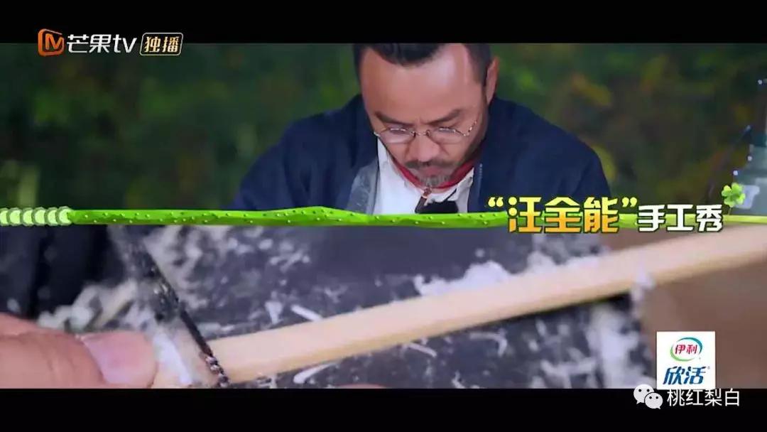 汪涵和林依轮,一个46岁,一个50岁,除了要承包野外一部分做饭的任务,在等饭做好的空档里,汪涵还就地取材,拿着把小刀,用竹子做出了腰带、发簪,还送给野食小哥一双竹筷子。