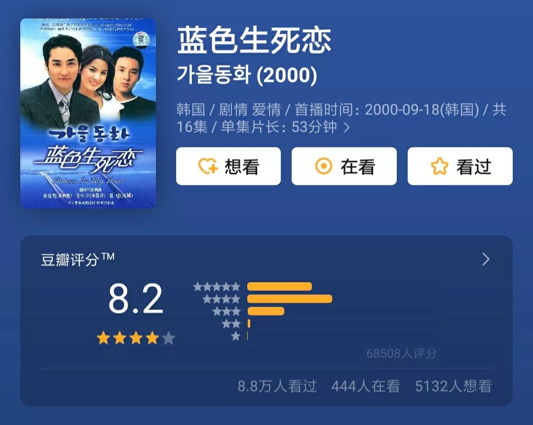 而飘人生第一部韩剧,就是他的《蓝色生死恋》。