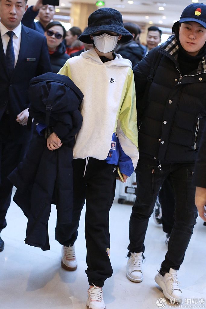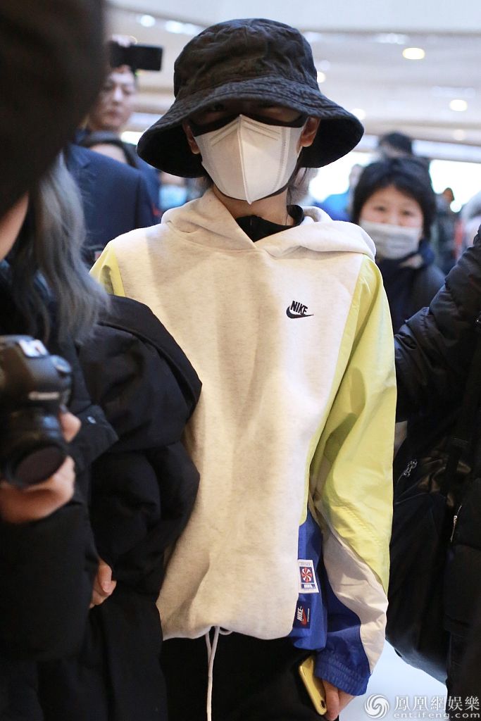 杨紫裹着黑色的羽绒服御寒,口罩遮面并戴着两层帽子,全程双手抱紧自己,保暖功夫做到位,这怕冷的体质也是很实在了。