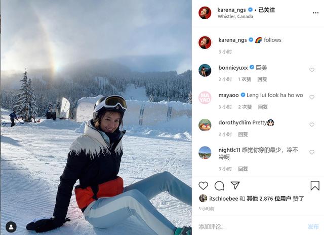 吴千语还晒出自己的滑雪look,没有了厚重的外套,身穿连体装的她大秀好身材,贴身的设计完美的勾勒出她的身形线条,细腰大长腿令人羡慕啊!
