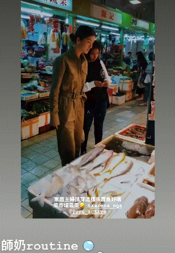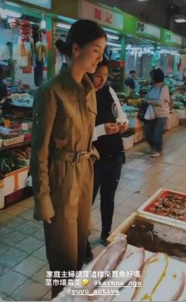 吴千语还晒出了日前现身市场买鱼的动态,只见她身穿军绿色连体工装,一身潮服look与菜市场真是格格不入,她自己都调侃称:“家庭主妇穿这样来买鱼好吗,菜市场最美!”的确这样的千语BB绝对是市场最靓的“师奶”!
