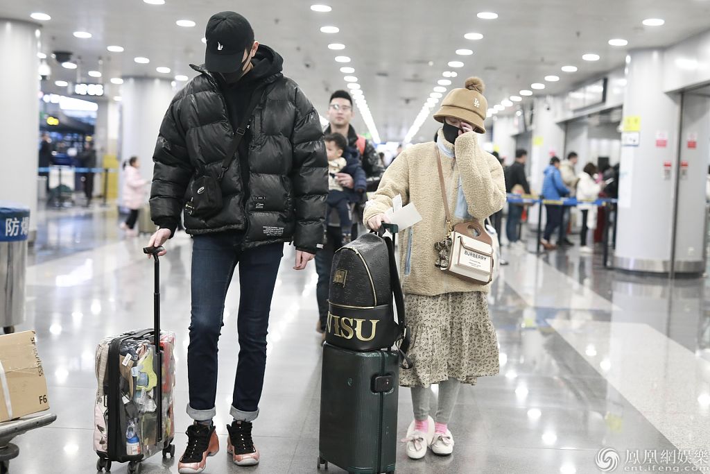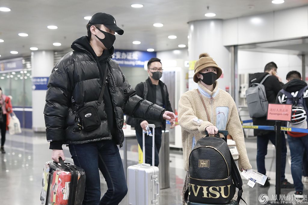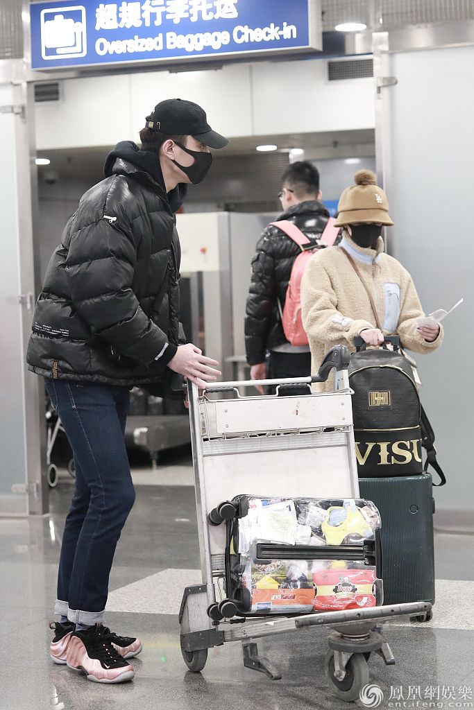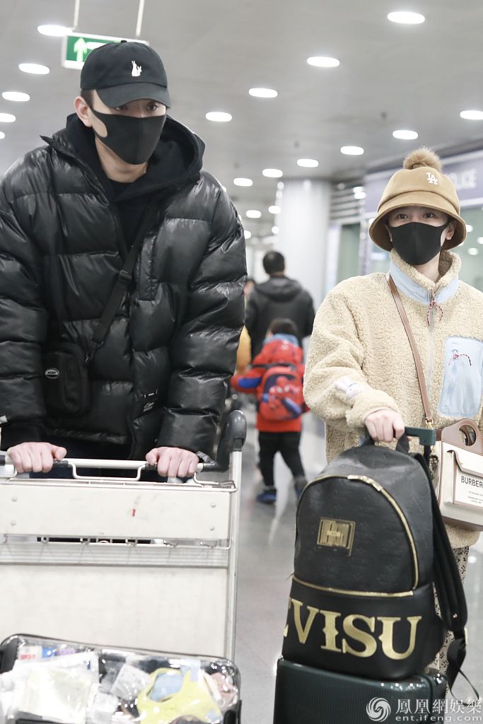 2020年1月20日,北京,于小彤、陈小纭现身机场。陈小纭穿羊羔毛上衣和碎花裙,脚踩白色毛绒鞋子,露出粉红袜子,满满少女心。于小彤化身“大力士”,推超多行李男人味爆棚,期间二人甜蜜对视狂撒狗