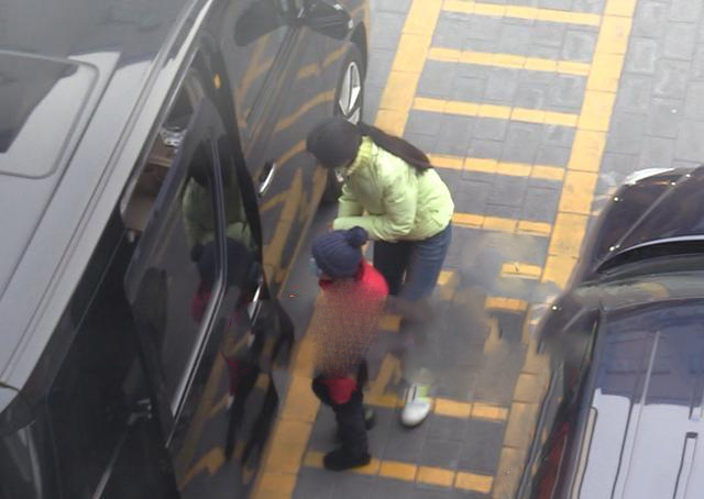 看完医生走出医院门口,外面已经有一辆黑色的保姆车在等候了,这名女子带着小男孩先上了车。