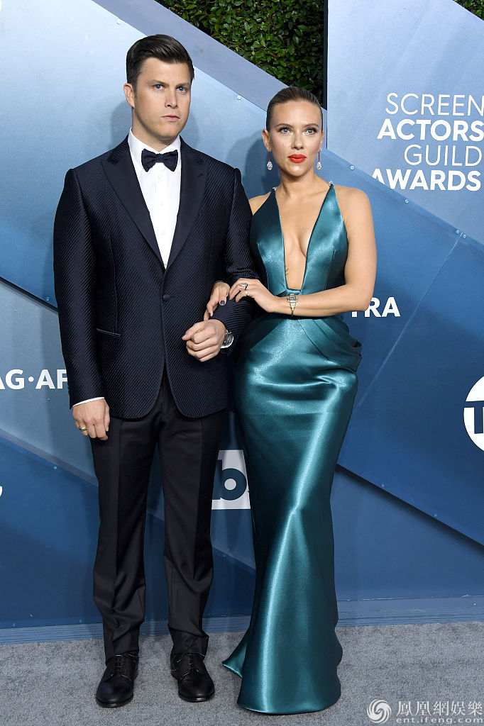 “寡姐”斯嘉丽·约翰逊(Scarlett Johansson)穿深V丝绸裙秀性感美背。