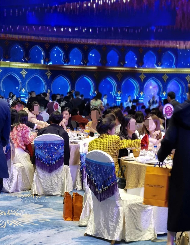 二人经过精心打扮,男帅女美吸引了众人的眼光,被不少喜宴宾客认出来,拍下“路透”照片。