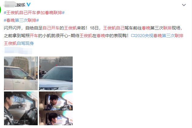 当然,第三次联排最受关注的莫过于TFBOYS的王俊凯,拿到驾照的他竟然自己开车参加春晚联排,一现身就受到粉丝追捧和媒体围观,而且“王俊凯自己开车参加春晚联排”登上热搜,众所周知,明星外出工作一般都有专人司机开车接送,或者主办方安排车接送,像王俊凯这样自己开豪车参加彩排可是第一次看见呀!