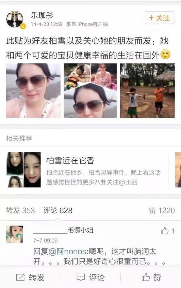 2012年,有人发现柏雪在社交平台注册了账号“柏雪近在它香”,时常更新旅游、聚餐的照片,看上去状态很好,2013年后又停更了。