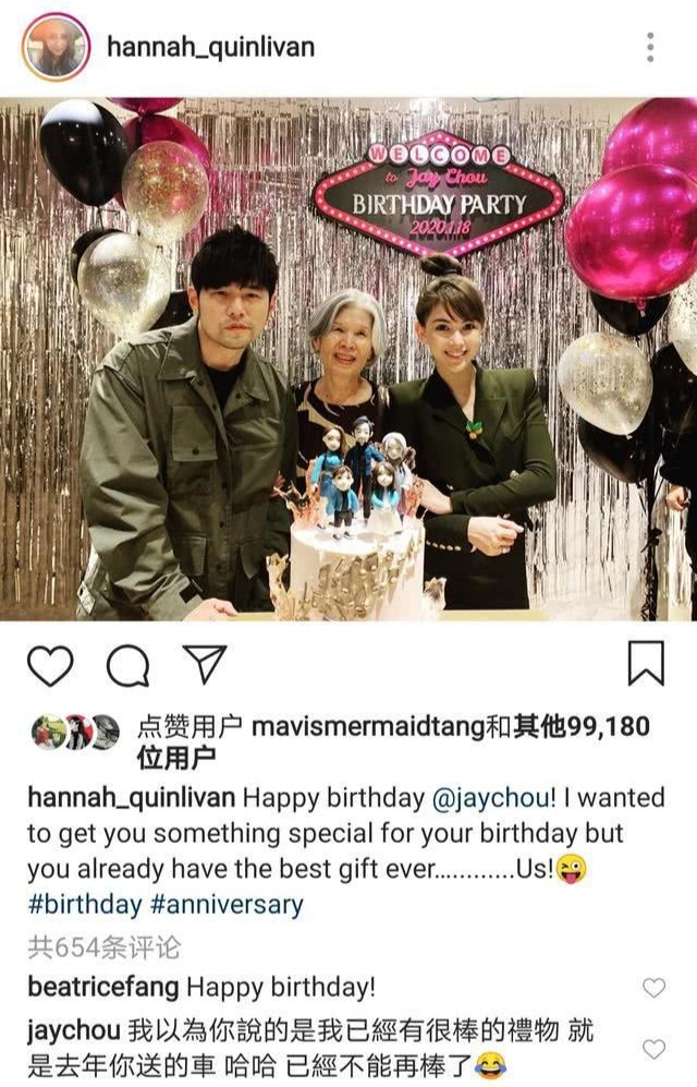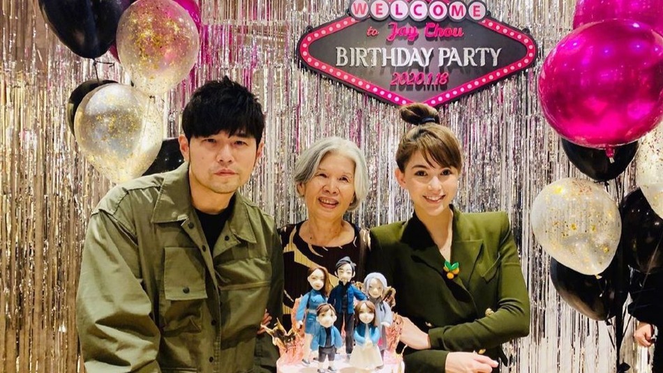 周杰伦和老婆昆凌穿着情侣色,合影时让妈妈站中间,三个人幸福庆生。