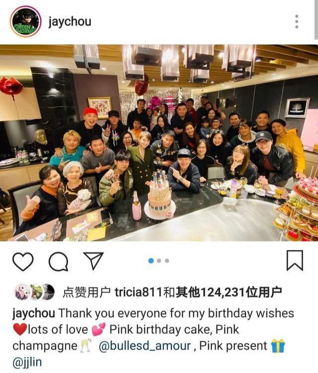 1月18日是周杰伦41岁生日,当晚他分享了生日派对现场照,并感谢大家的祝福“谢谢大家给我的生日祝福