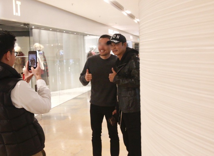 任达华商场与网友合影。