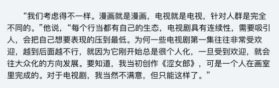当时朱德庸先生表示电视剧并没有表现出原作的幽默和辛辣,更倾向于温馨的风格,和自己的原著是不同的创作方向。不仅仅剧情内容和剧情风格改变很大,连胡兵饰演的男主角都是新增的角色,可以算是早期的魔改剧了。
