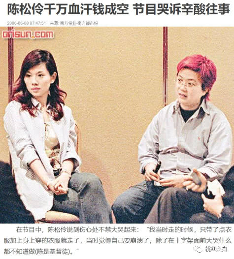 在节目里,陈松伶自爆“被姐姐们赶走时,自己过去所赚的血汗钱一分都没拿走”。