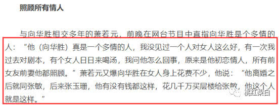 虽然向华胜是有妻子的,但在向华胜好哥们眼里,他是一个多情的人: