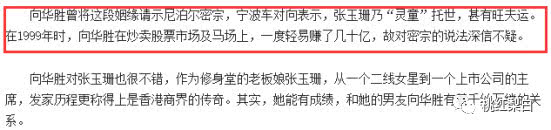 说来也是巧,向华胜跟张玉珊在一起时,赌马和股票轻松赚了几十亿,大佬也对张玉珊的锦鲤体质深信不疑。