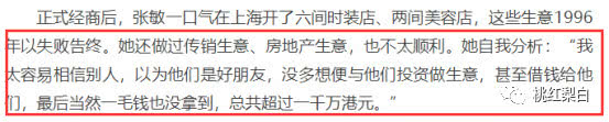 年少进入娱乐圈打拼的张敏,性格单纯、容易轻信于人,在做生意上确实不是一把好手,跟朋友合伙被坑了一千万港币。
