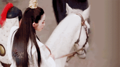 她骑在白马上的她回眸一笑,冲着张无忌喊话:我在大都等你。