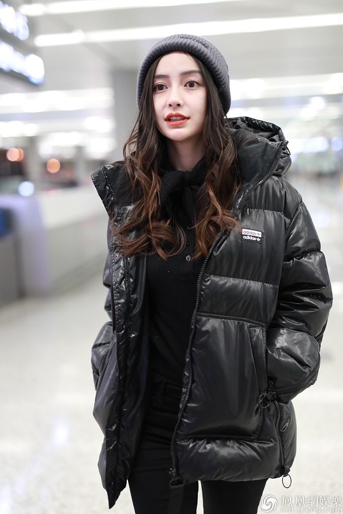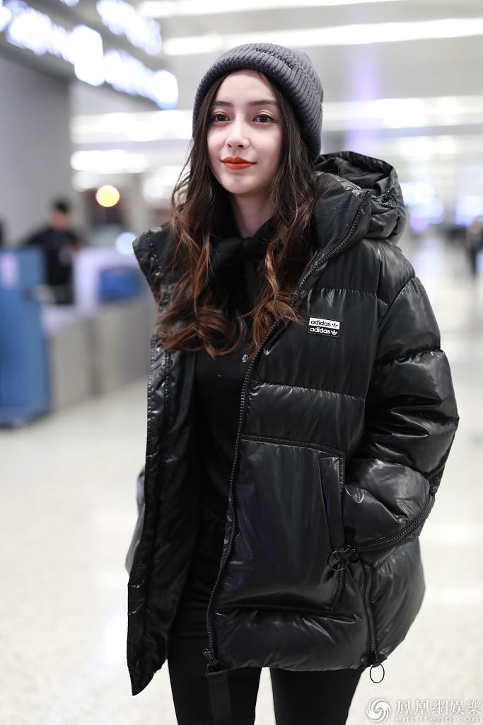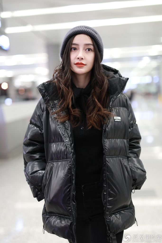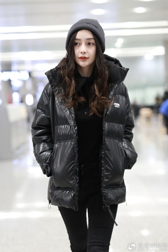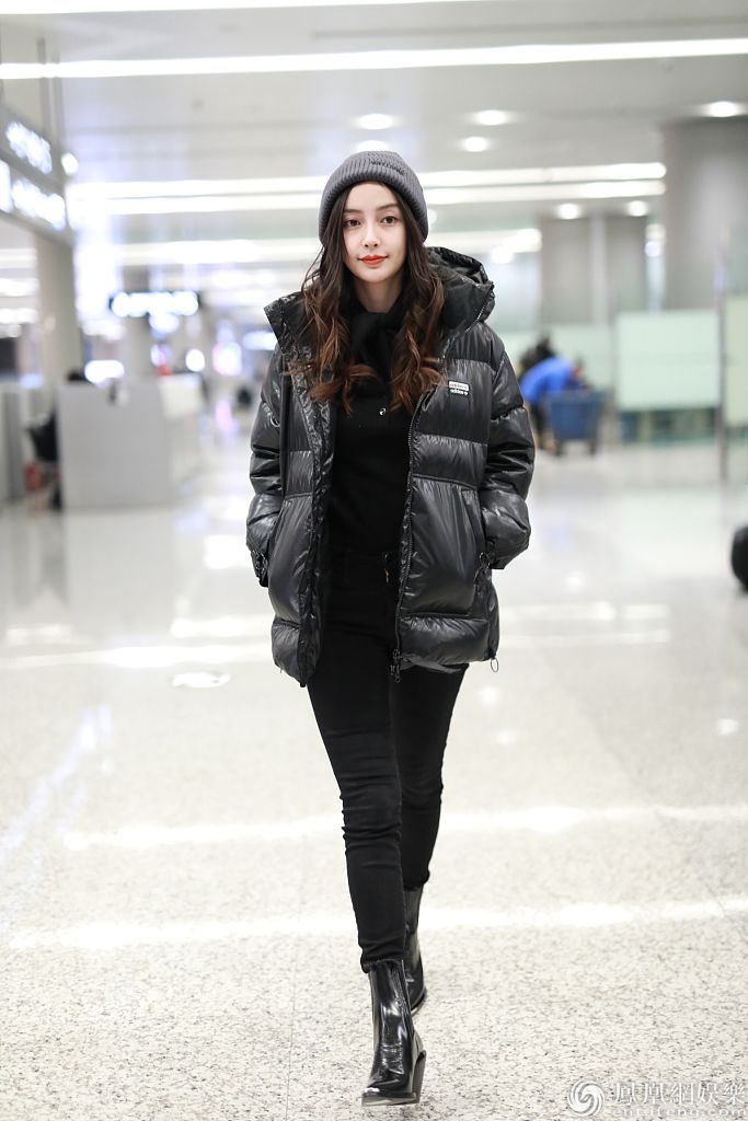 2020年1月18日,上海,Angelababy现身机场。她弯嘴浅笑明媚灿烂,戴着针织帽搭红唇女人味儿十