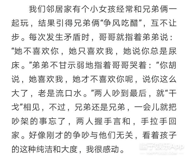 弟弟:胡说,她喜欢我才不喜欢你,你流口水。