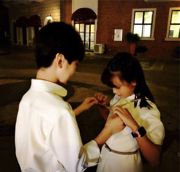 去年12月18日,是郭涛的生日,石头在网络上晒了和郭涛的合影。看到照片的一瞬间,甚至有点没有认出他来。身高上只比郭涛矮半个头,脸上完全没有了孩子气,就已经是个青春阳光的大男孩了。