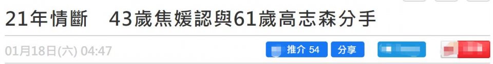 1月18号,有香港媒体报道称,43岁的"舞台剧女王"焦媛承认自己已经与大18岁的知名导演高志森分手。这段感情从不被看好到坚持21年,非常不容易,没想到最后他们竟然还是分了手。