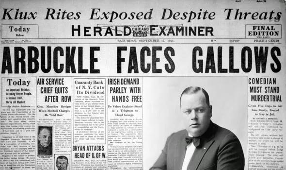 好莱坞的第一起丑闻发生在1921年旧金山一家酒店的派对上。这起丑闻涉及默片明星罗斯科·阿巴克尔,他因为成为第一个签下百万美元合同的演员而兴高采烈(那是20世纪20年代的100万美元)。阿巴克尔是一位喜剧天才,也是一位卓有成就的肢体表演者,尽管大腹便便,但他的脚步很轻。他出演过数百部电影,包括短片和长片。他在各方面都是巨