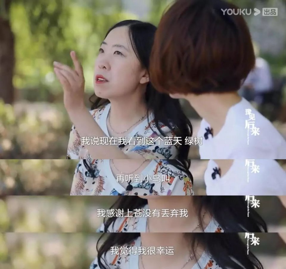 “觉得十几年过来,还能看见蓝天绿树,听见小鸟的声音,觉得很幸运,上苍没有抛弃我,还能面对世界。”