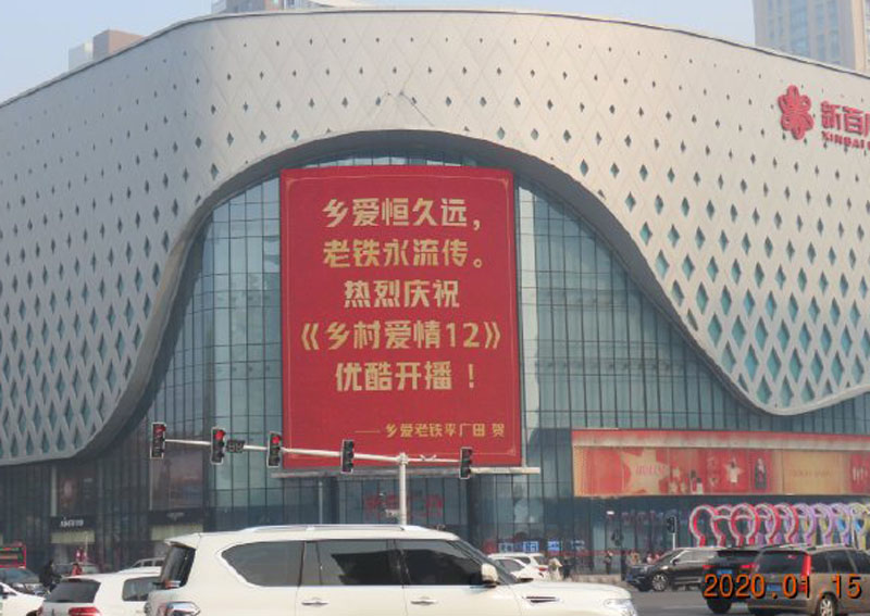 从该网友晒出的图片来看,在某城市一些巨幅广告屏上,都打出了“乡爱恒久远,老铁永流传,热烈祝贺《乡村爱情12》在某平台开播”的字样,落款是:乡爱老铁李广田。而且,从图片下方的拍摄时间上来看,正好是《乡村爱情12》开播的日子。