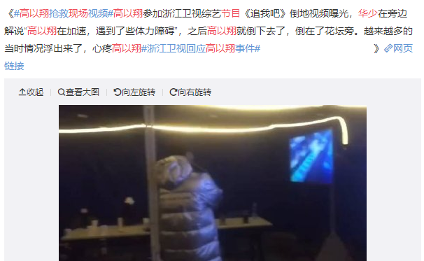 华少作为当时的节目主持,对高以翔倒地瞬间依然进行着解说,因为不是在现场,所以华少和其他嘉宾在录音棚中也没有发现什么不妥。