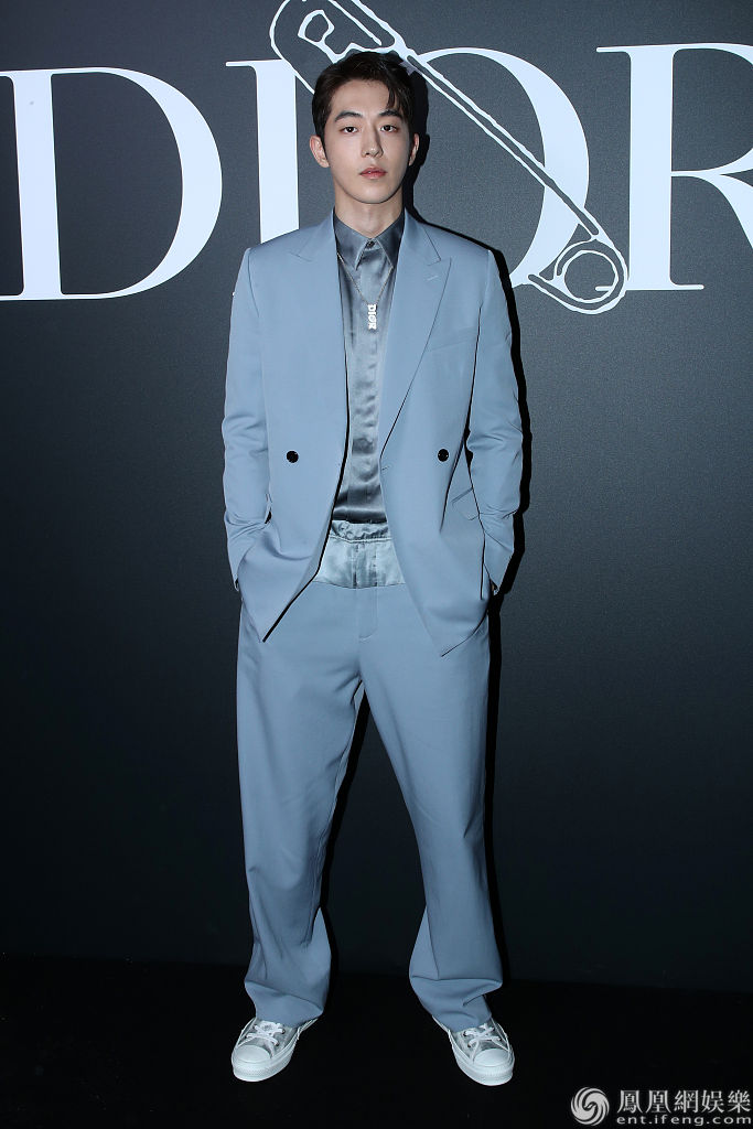 南柱赫身穿蓝色西装现身Dior秀场,原本就是模特身材的他怎么穿都不会错。