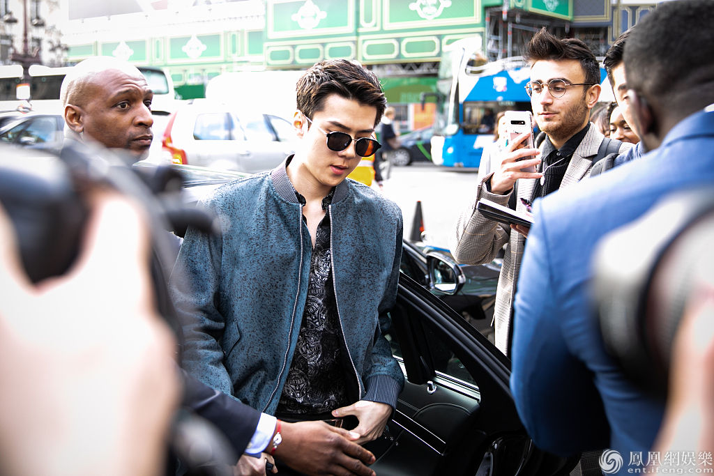另一边厢,泡菜国爱豆吴世勋和南柱赫也来到秀场,看吴世勋这人气,不知道的还以为他是好莱坞巨星。